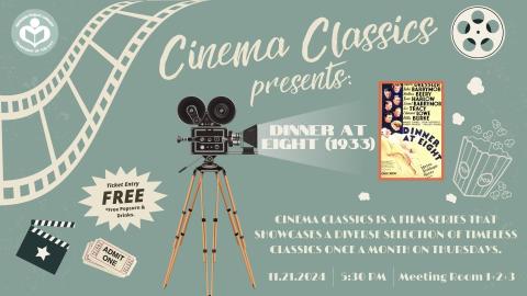 Cinema Classics takes place once a month on Thursdays. The movie will begin promptly at 5:30 pm in the Community Room.
