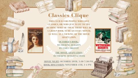 This club is for people who love classics, or who just want to try reading more of them. There will be a group book to read every month, as well as a viewing of the movie adaptation.