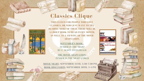 This club is for people who love classics, or who just want to try reading more of them. There will be a group book to read every month, as well as a viewing of the movie adaptation.