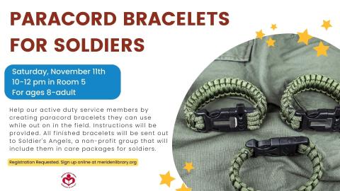 Help our active duty service members by creating paracord bracelets they can use while out on duty.