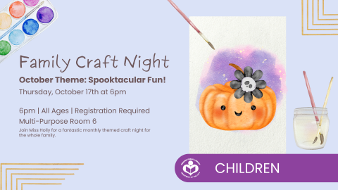 Join us for a monthly family craft night that is sure to be a grand time. This months theme is Spooktacular Fun!