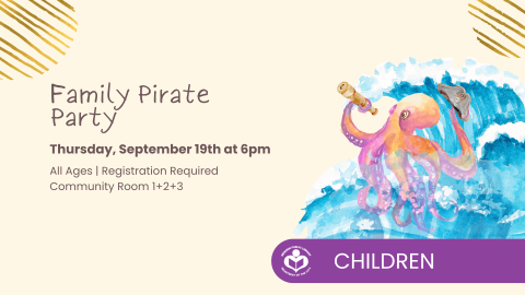 Ahoy families! Join us at the library to celebrate National Speak Like a Pirate Day with fun music, crafts, and games.