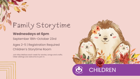 Join Miss Melissa for a family storytime filled with music, stories, dancing, and more.