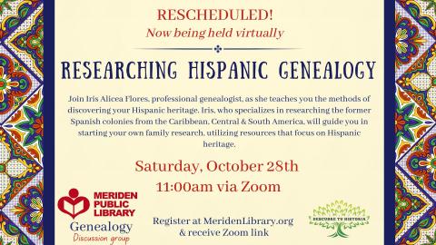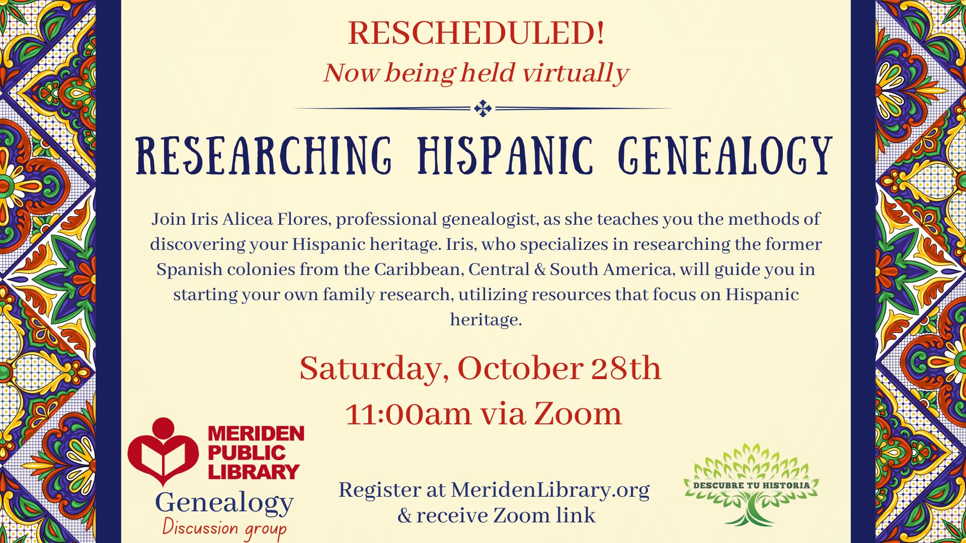 Join Iris Alicea Flores, professional genealogist, as she teaches you the methods of discovering your Hispanic heritage. Iris, who specializes in researching the former Spanish colonies from the Caribbean, Central & South America, will guide you in starting your own family research, utilizing resources that focus on Hispanic heritage.