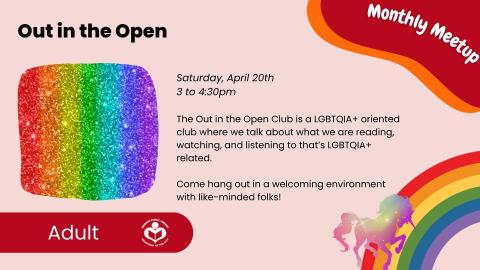 The Out in the Open Club is a LGBTQIA+ oriented club where we talk about what we are reading, watching, and listening to that’s LGBTQIA+ related.