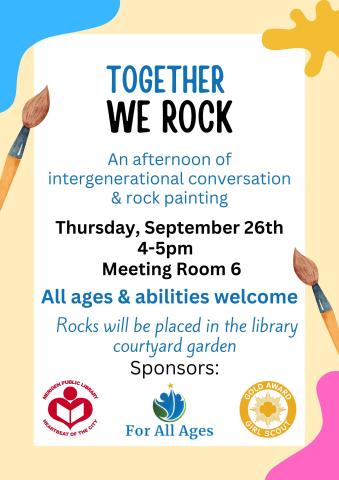 Paint your own rock to add into our brand new Meriden Public Library Courtyard. This programming is open to people of all ages and abilities.