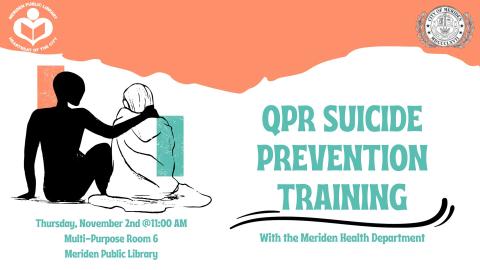 Join Elizabeth DeMerchant of the Meriden Health Department on Thursday, November 2nd @11:00 AM - 12:00 PM for a FREE In-Person QPR Suicide Prevention Training. This training will be held in Multi-Purpose Room 6.
