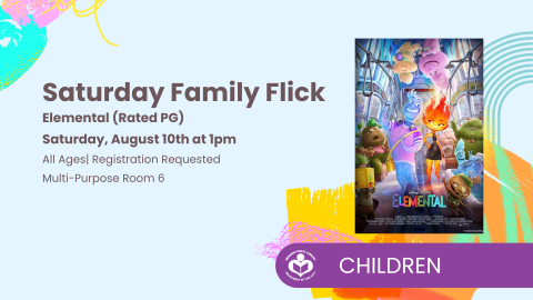 Join us for a fun family feature Elemental (Rated PG)! Cozy up and bring something comfortable to sit on.