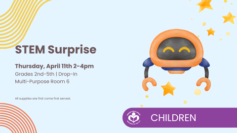 Come try your hand at engineering, coding and much more. We'll have a variety of hi-tech and lo-tech toys out to explore different STEM concepts. All supplies are first come first served.