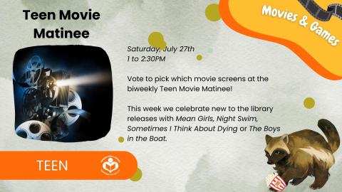 Vote to pick which movie is shown at the bi-weekly Teen Movie Matinee!