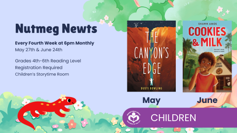 This event is in the "Children" group This event is in the "School Age" group This event is in the "Tweens (Ages 8-12)" group Nutmeg Newts: Take Home Kits All Day Children's Department at Meriden Public Library Program Type: Book Club Age Group: Children, School Age, Tweens (Ages 8-12) Enjoy our book club as a kit this month! Kits will be available starting on November 25th through December 23rd. The Nutmeg Newts Book Club is for children with a 4th through 6th grade reading level. Open Register Now Registration Required This event is in the "Children" group This event is in the "School Age" group This event is in the "Tweens (Ages 8-12)" group Dec 23 2025 Tue Nutmeg Newts: Take Home Kits All Day Children, School Age, Tweens (Ages 8-12) Open Library Branch: Meriden Public Library Room: Children's Department Age Group: Children, School Age, Tweens (Ages 8-12) Program Type: Book Club Registration Required Event Details: Enjoy our book club as a kit this month! Kits will be available starting on November 25th through December 23rd. The Nutmeg Newts Book Club is for children with a 4th through 6th grade reading level.