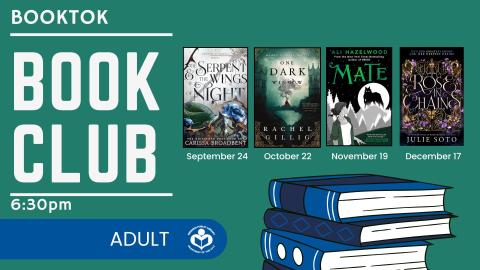 This event is in the "Adults" group Booktok Bookclub Wednesday, December 17, 2025 at 6:30pm - 8:00pm Meeting Room 5 at Meriden Public Library Program Type: Book Club Age Group: Adults Join us for BookTok Book Club, where we discuss books that have trended on social media platforms, including TikTok and Instagram.Share thoughts on your latest read or gather ideas for the next one! Open Register Now Registration Required This event is in the "Adults" group Dec 17 2025 Wed Booktok Bookclub 6:30pm–8:00pm Adults Open Library Branch: Meriden Public Library Room: Meeting Room 5 Age Group: Adults Program Type: Book Club Registration Required Event Details: Join us for BookTok Book Club, where we discuss books that have trended on social media platforms, including TikTok and Instagram.Share thoughts on your latest read or gather ideas for the next one!