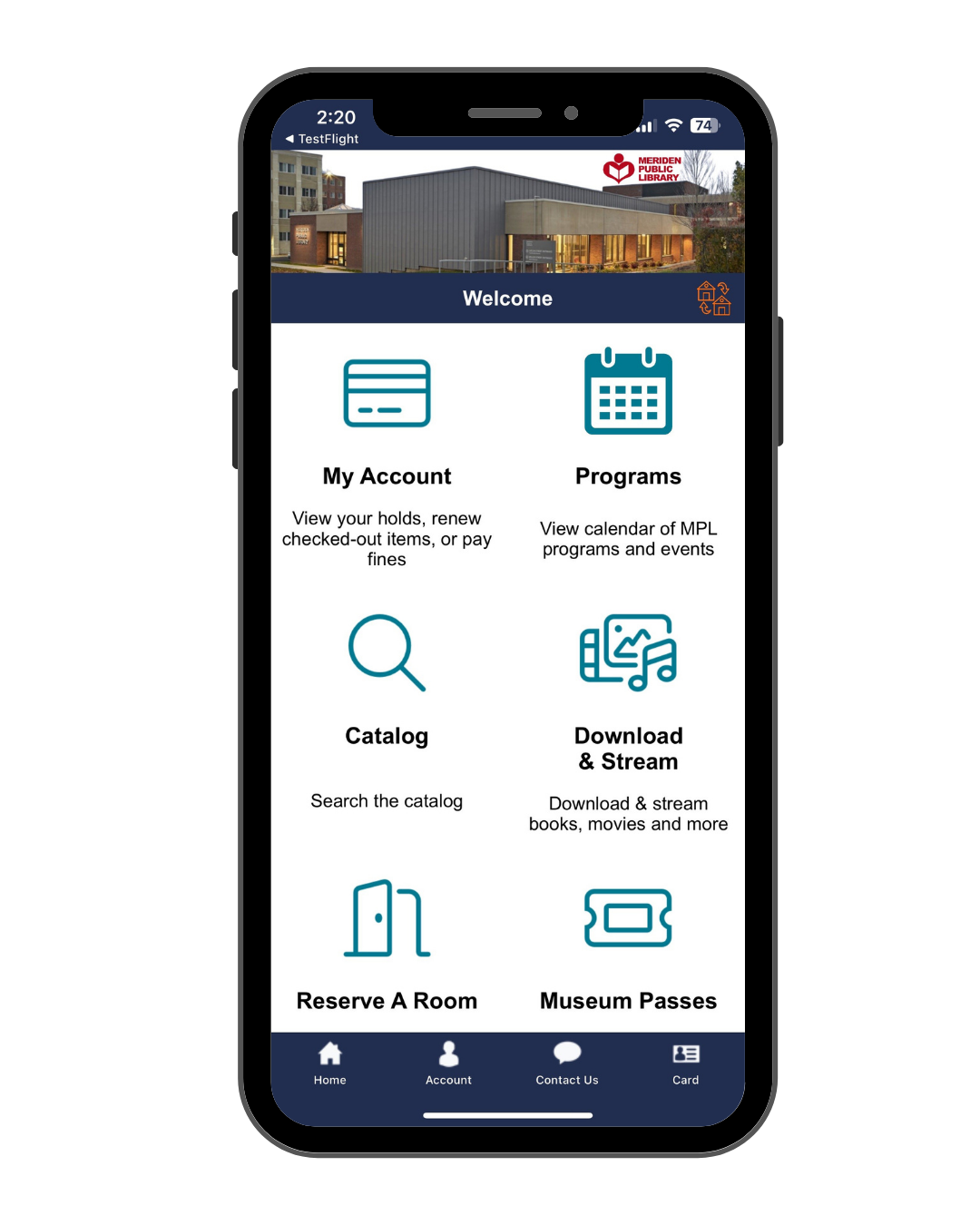 Download our free app that lets you access your digital library card, search for materials, place holds, renew items, register for programs and more!